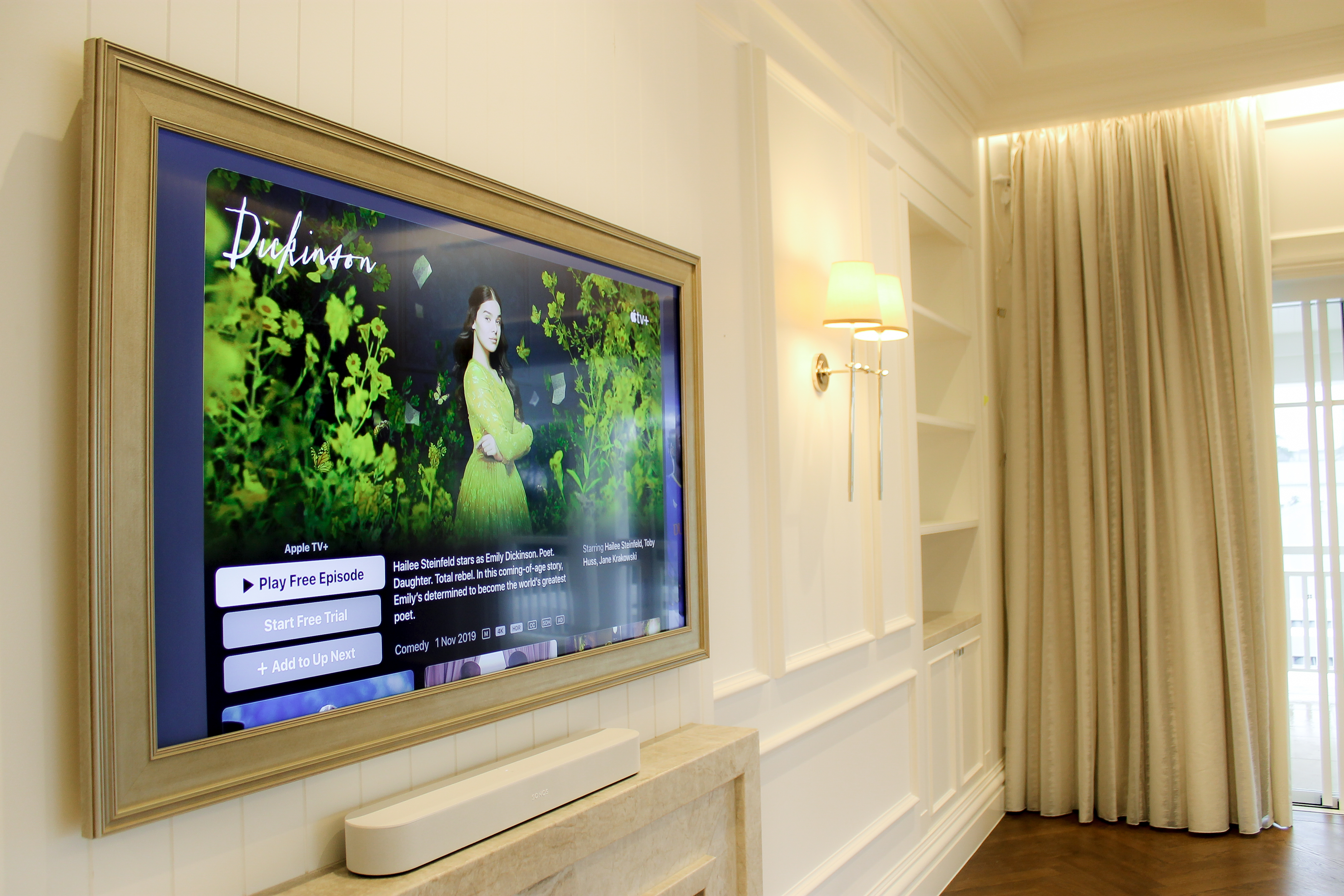 Samsung Smart TVs including several Frame TVs are spread throughout house, with Sonos sound bars making for a clean setup with fantastic audio. Sonos subwoofers and amplifiers complete the AV system, powering a number of in-ceiling speakers throughout the house.