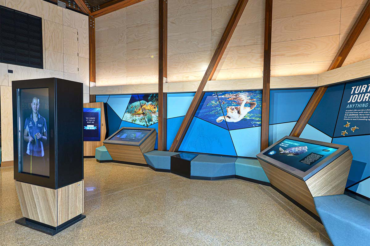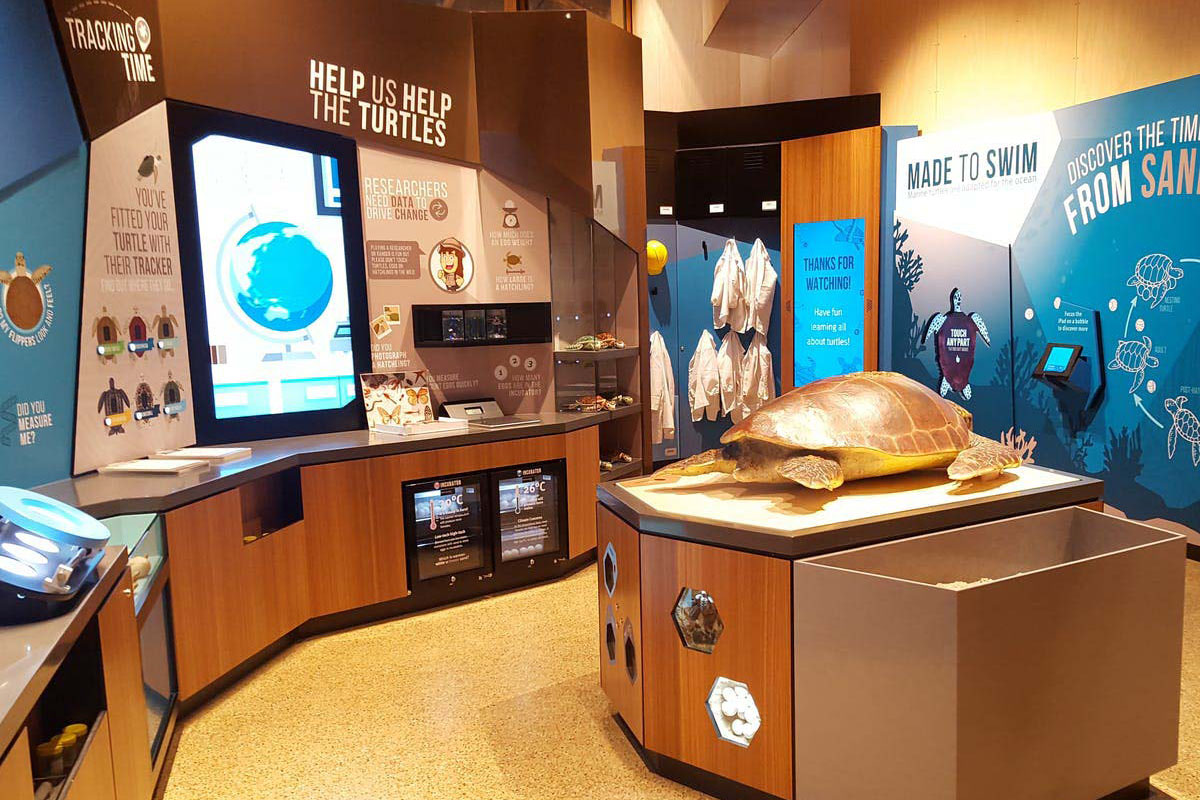 Recently, the Center underwent a $22 million renovation, with the goal of turning it into a year-round attraction. Opening just in time for the latest season, the revamped facility relies on AV technology to provide a state-of-the-art experience that fully immerses visitors in marine turtle research and conservation. The upgraded space is packed with interactive touchscreen monitors and tablets, new digital signage, two monumental LED walls, external LED signage and its crown jewel: an immersive theater that recreates the turtle nesting and hatchling experience. The high-tech makeover was provided by exhibit design and build company Focus Productions, in partnership with RTI integrator Code Red Smart Technology.